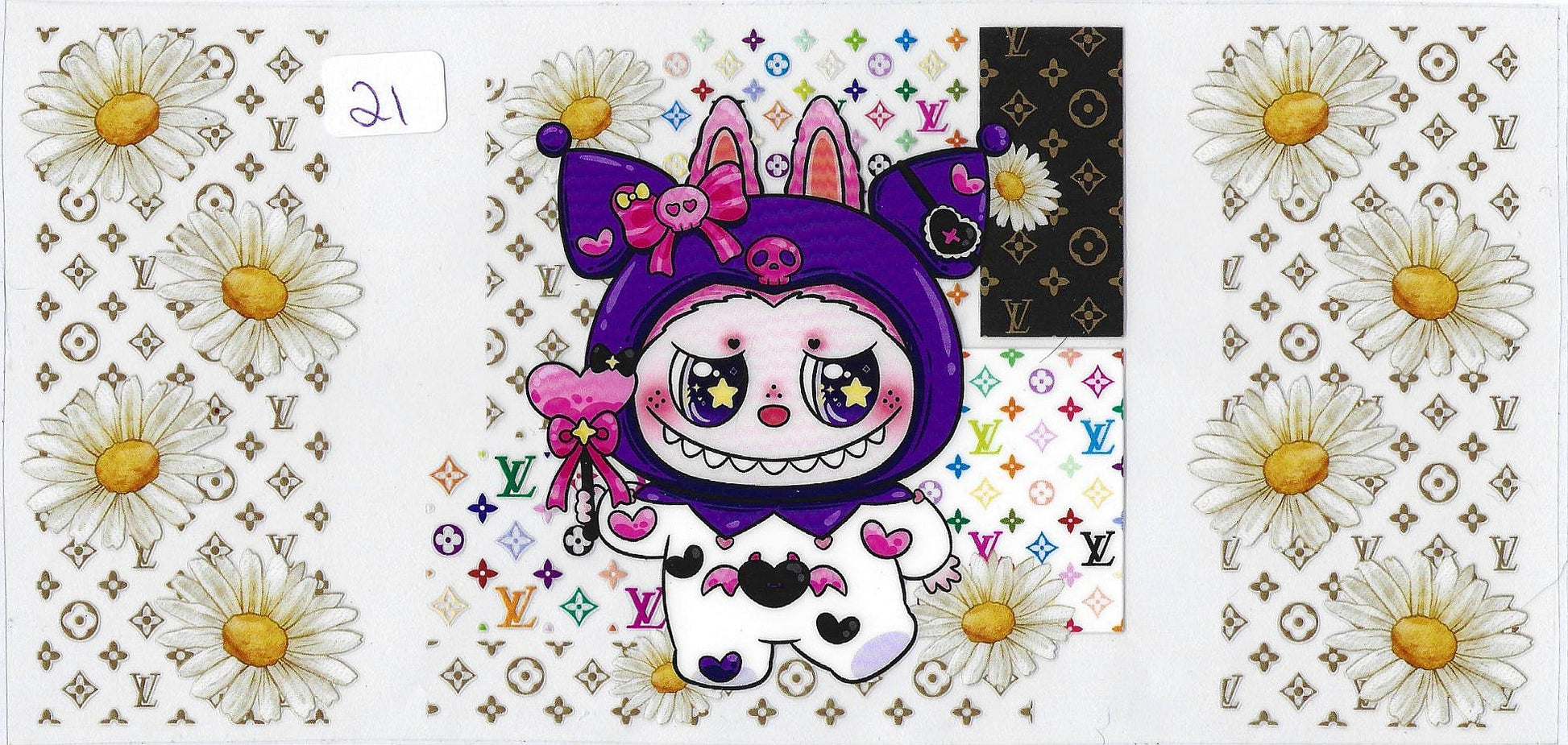 La Bubu with a Louis Vuitton background and daisies